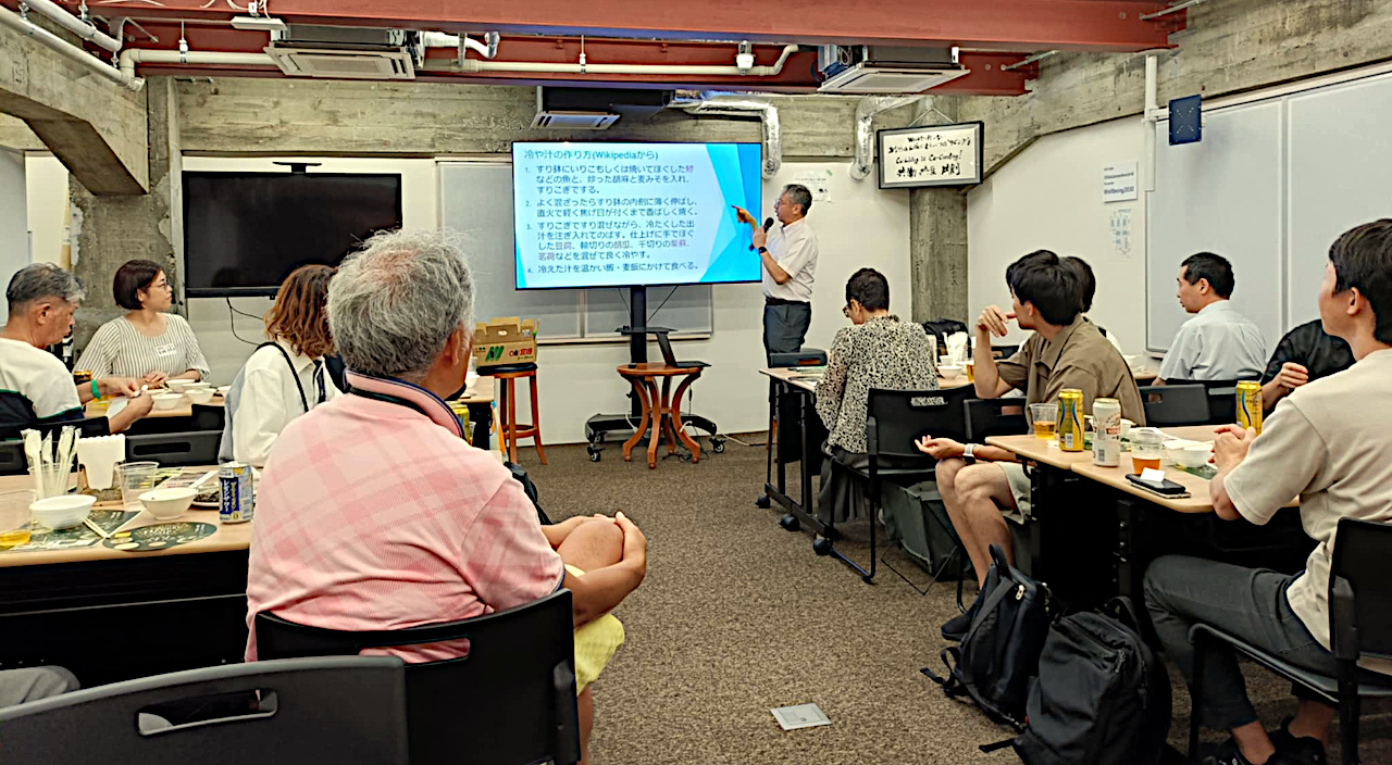 8月29日(金)には、神田錦町のKandaクラウド(GENERYS共創リアル拠点)で折良く「シン・ジェネリス#20『2025年 新シリーズ!ご当地FOOD★NIGHT 2 残暑を乗り切る!スタミナ野菜 ~コラボ with 宮崎県~』」というイベントが行われ、私が「あなたの知らない冷や汁の世界」というプレゼンを行い、ノーマル、赤、白の3種の冷や汁を試食していただくことになっていたので、「午後LIVE ニュースーン」の取材陣も準備から張り付きで撮影。